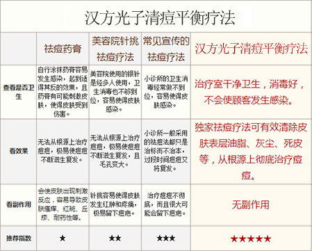 传统祛痘疗法之所以不能有效治疗青春痘,就是因为没有真正解决青春痘问题。“汉方光子清痘平衡疗法”根据患者情况找到病因,利用中西结合去治疗,内调外养,治疗青春痘见效快。